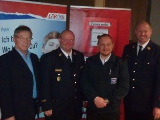 v.l.n.r: LFV Vorsitzender Alfons Weinzierl, KBI Christian Happach, Geschäftsführer Uwe Peetz, KBR Ben Bockemühl