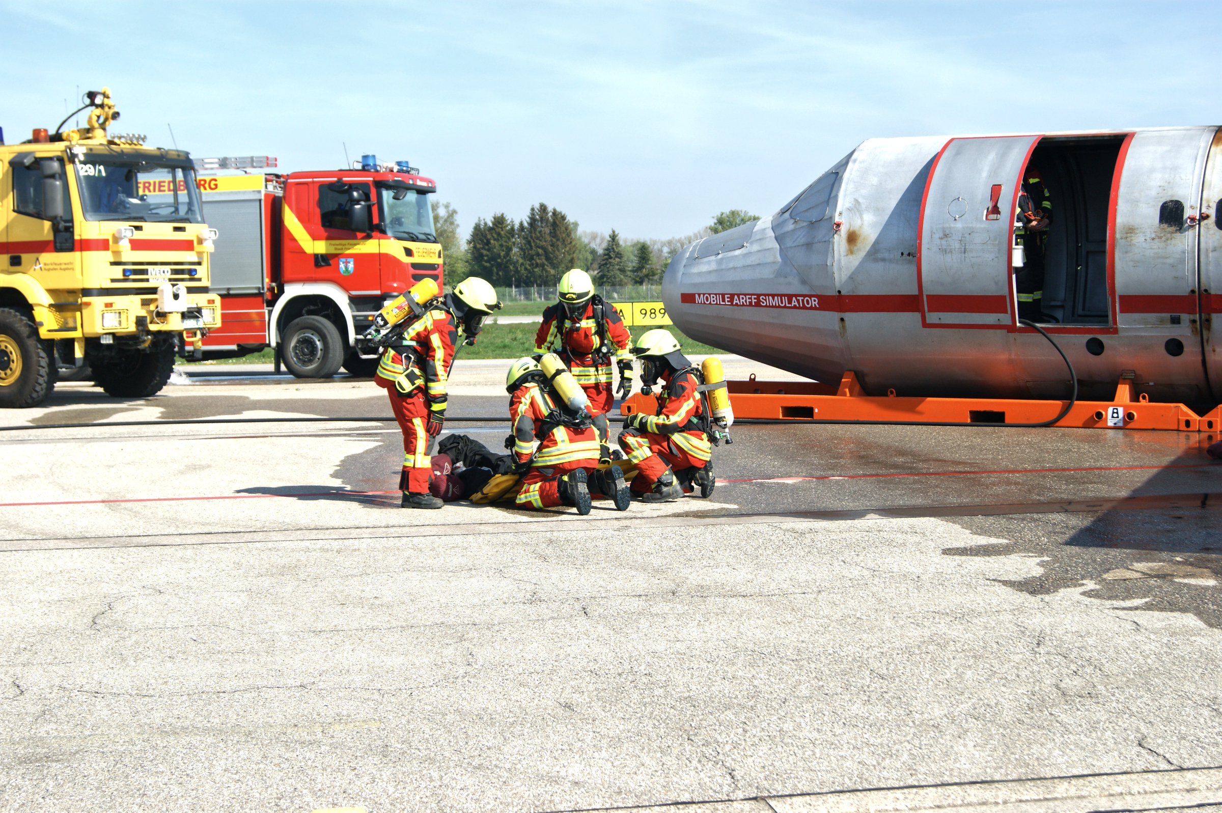 Am 13. April fand eine größere Übung am Augsburger Flughafen statt, an der neben der Flughafenfeuerwehr und der Berufsfeuerwehr Augsburg auch Feuerwehren aus dem Landkreis Aichach-Friedberg teilnahmen.
