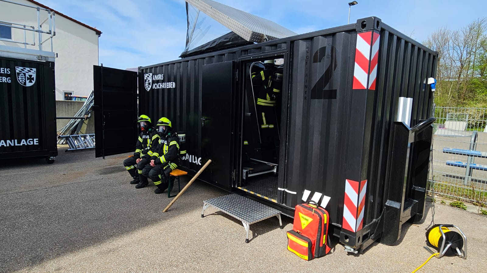 „Feuertaufe“ für die mobile Atemschutzstrecke des Landkreises: Zum ersten Mal wurde ein kompletter Streckenbegehungstag in der vor wenigen Monaten angeschafften Mobilen Atemschutzstrecke MOBAS durchgeführt.